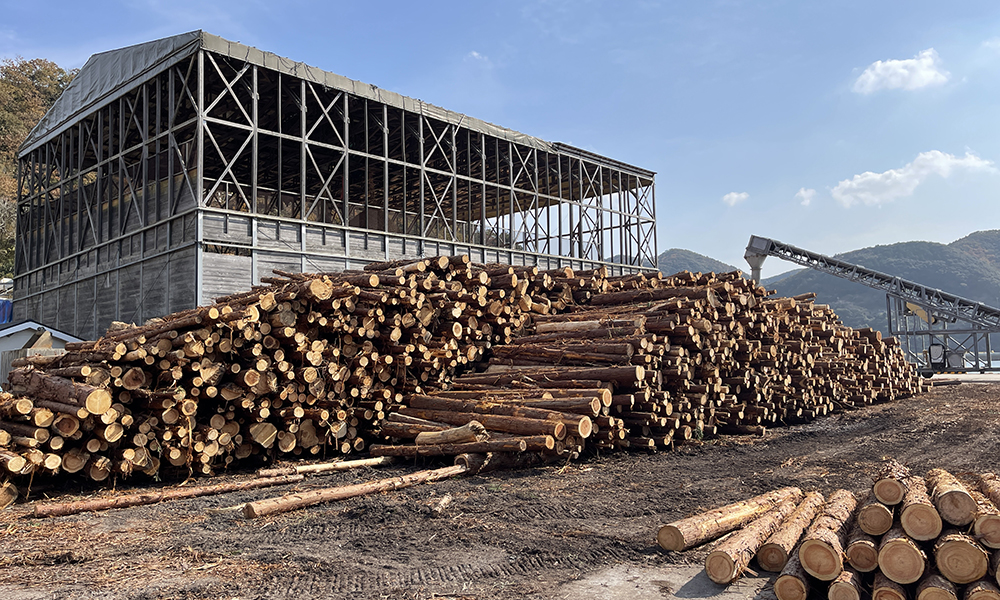 当社は木材チップを製紙工場、バイオマス発電所に供給している。